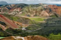 In Kirkjubaejarklaustur verlassen wir die Ringstraße in Rich­tung Hochland. Über eine Schotterpiste erreichen wir – mit kleinen Flussdurchquerungen – die Feuerspalte Eldgja und das farbenprächtige Liparitgebirge Landmannalaugar. Das Gebiet lädt zu einer Wanderung auf den Aussichtspunkt des Berges Blahnukur (943 m) ein. Wer möchte, kann in der natürlichen heißen Quelle am Fuße des Berges baden. An den Ausläufern des Vulkans Hekla entlang geht es zur nächsten Unterkunft. Fahrstrecke ca. 200 km.