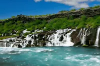 6. Tag: Lavawasserfälle – heiße Quellen – ReykjavikDie größte Heißwasserquelle Europas Deildartunguhver stößt pro Sekunde über 180 Liter Wasser aus. Nahe Reykholt fließt der Lava-Wasserfall Hraunfossar über eine Länge von 900 m in den Fluss Hvita. Durch den Hvalfjördur-Tunnel erreichen Sie am Nachmittag Reykjavik (2 Übernachtungen). Abgabe des Mietwagens.